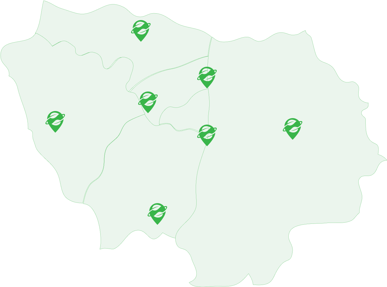 Paris (75), Seine-et-Marne (77), Yvelines (78), Essonne (91), Hauts-de-Seine (92), Seine-Saint-Denis (93), Val-de-Marne (94), Val-d’Oise (95).